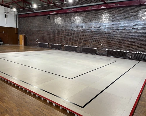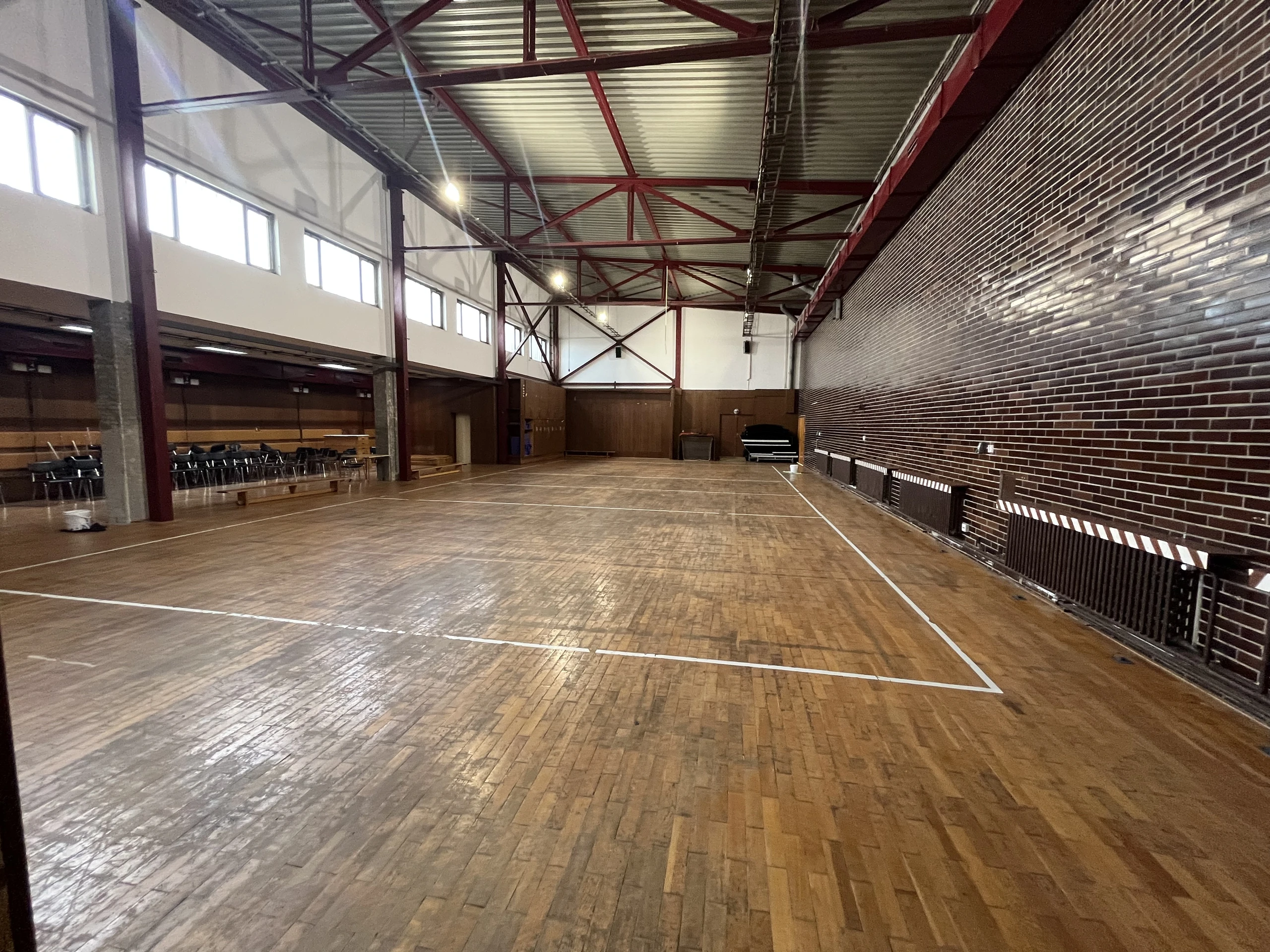 You can play football, floorball, netball, volleyball, badminton, but also many other sports in the gym. The size of the gym is 12 x 24 meters.