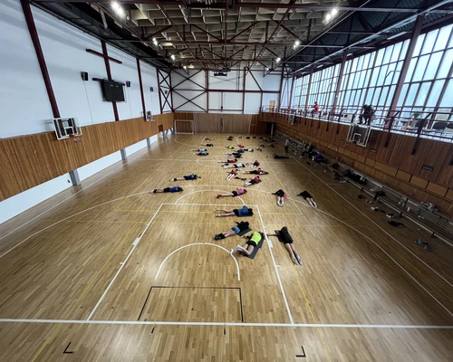 Day and artificial lighting sports hall can be used for basketball (6 baskets), volleyball, floorball, martial arts and other activities. The size of the sports hall is 18 x 38 meters, a gallery for spectators with a capacity of 300 people,. The sports hall has a new decking and offers a high quality sound system. We organize competitions of international character, as well as corporate competitions of sports teams.
